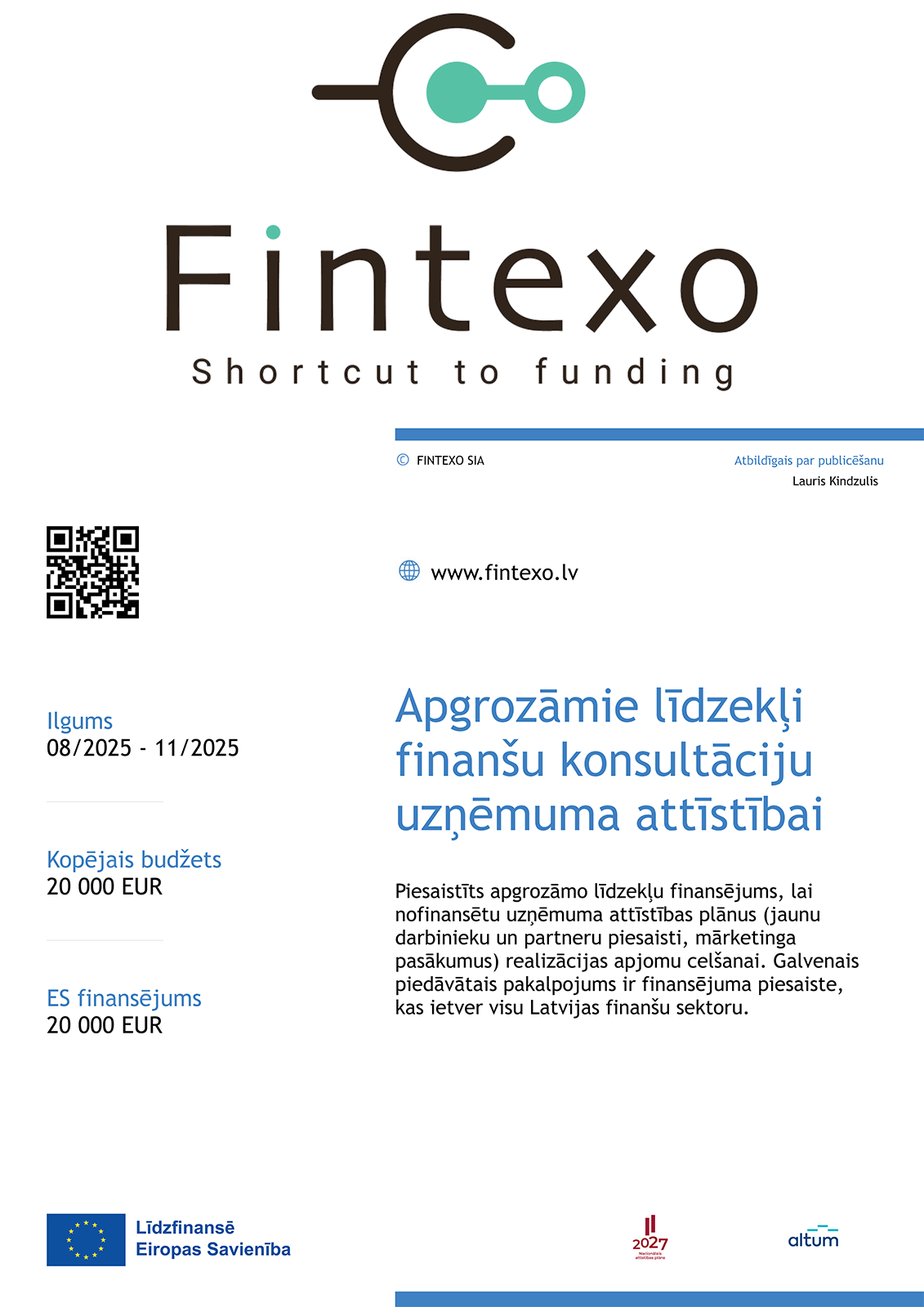 Finansējums ir instruments. Mēs nodrošinām, lai tas nokļūtu prasmīgās rokās un spēlētu nevainojami. Ar Fintexo atbalstu uzņēmumi iegūst līdzekļus projektu attīstībai un augstāku biznesa mērķu sasniegšanai. Vai arī Jūs vēlaties veicināt sava biznesa izaugsmi?